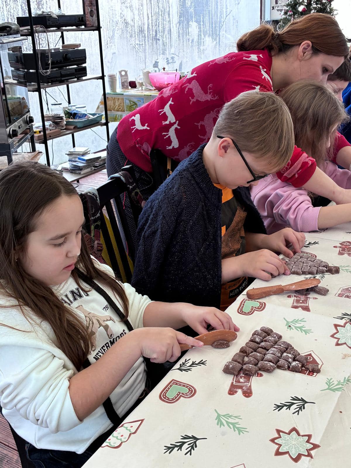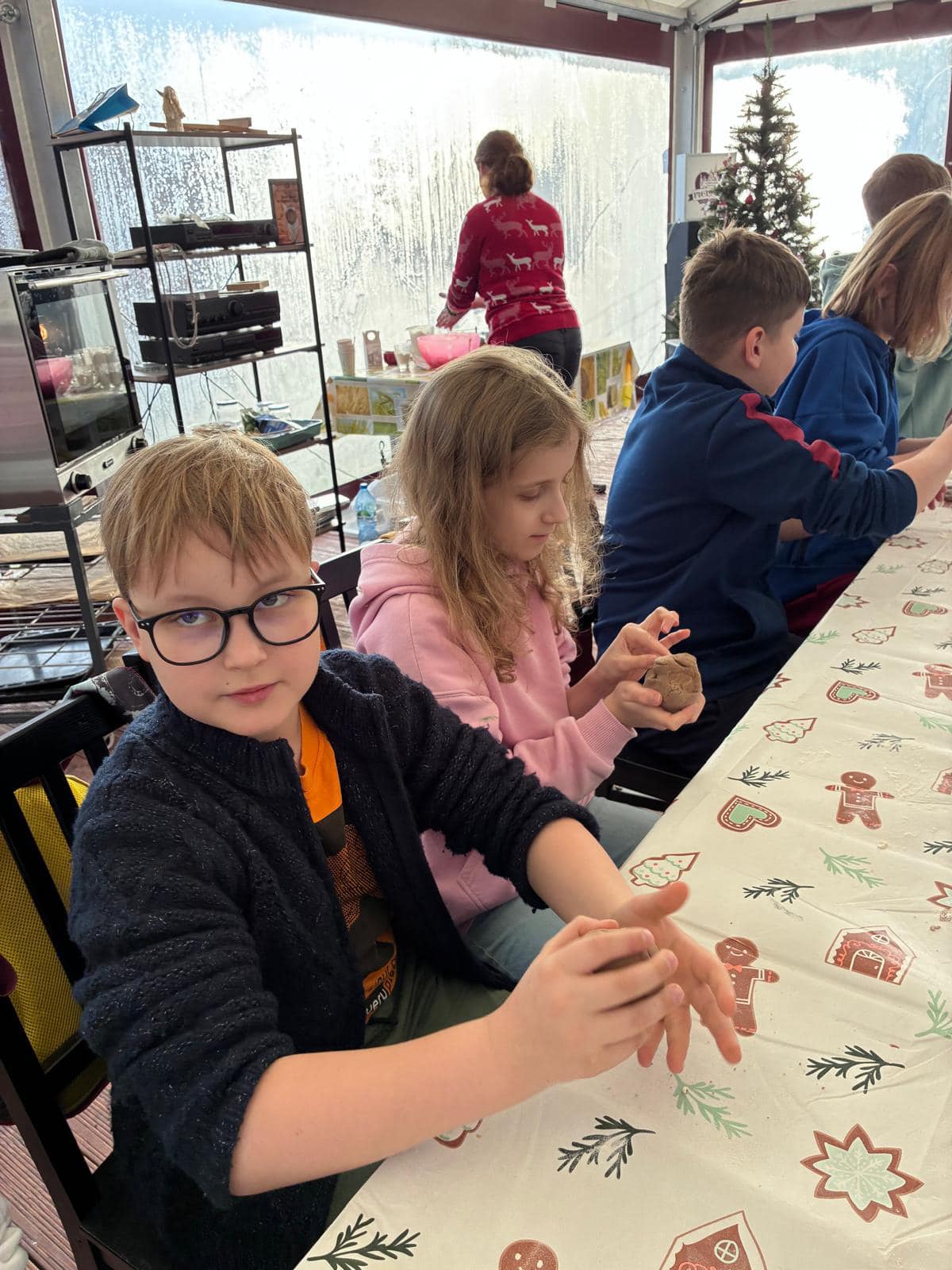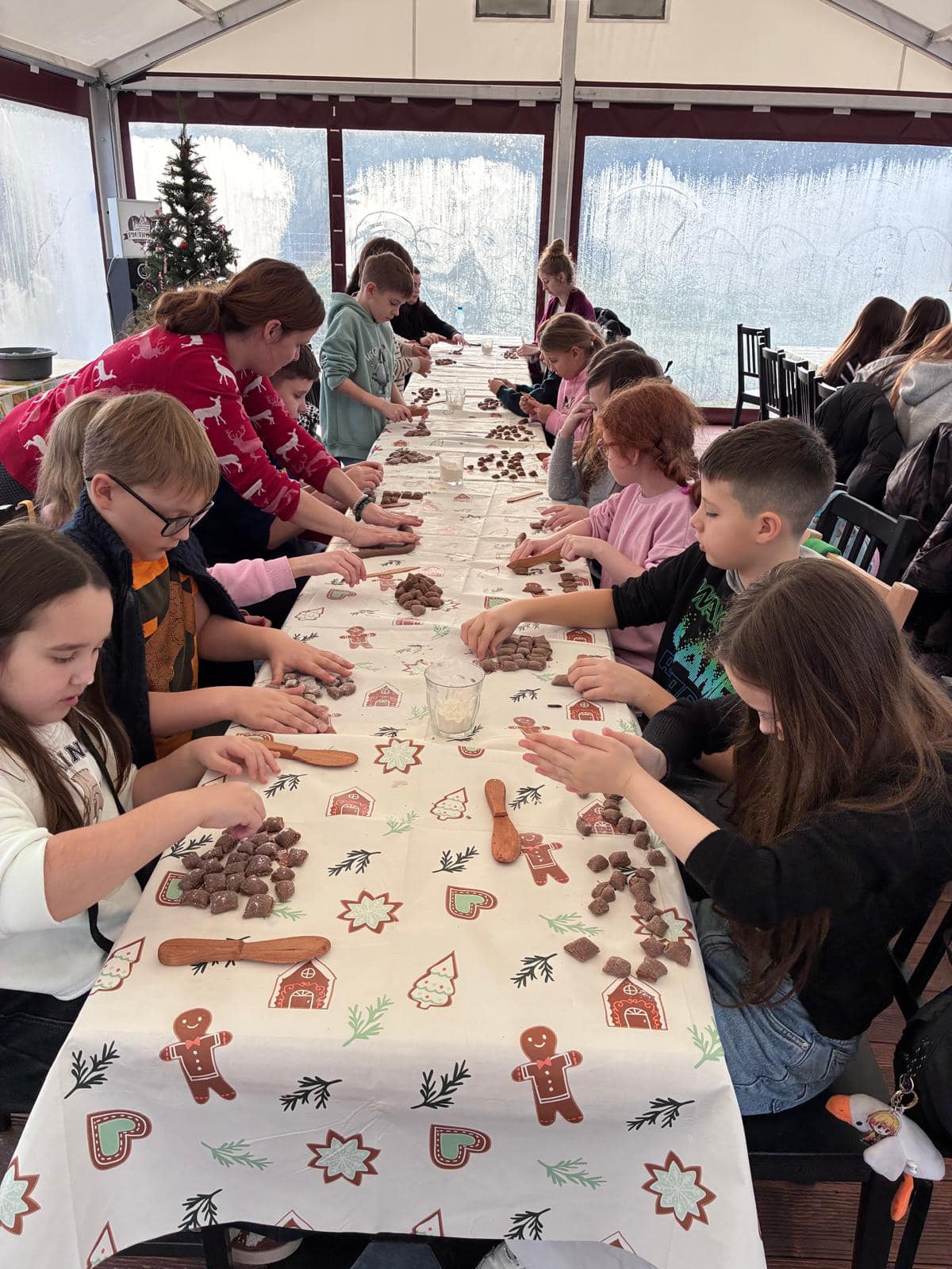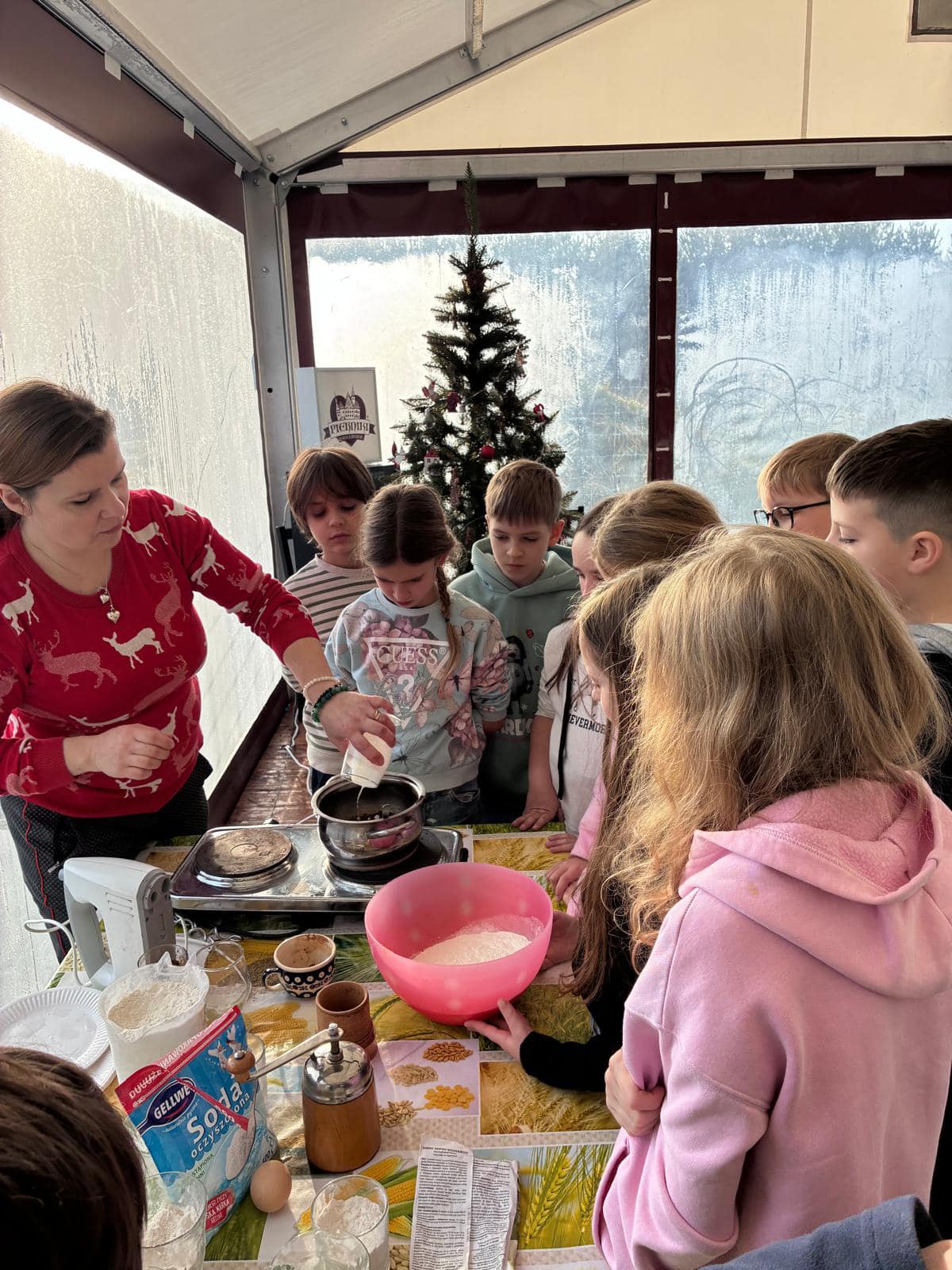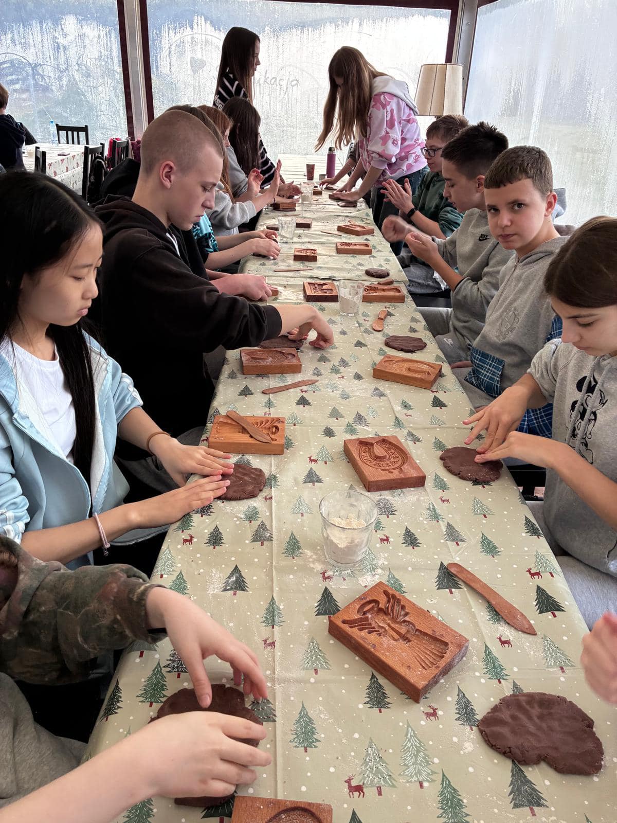W środę 17.12. 2025 r. uczniowie klas: 3b, 6a, 7a i 8a udali się z wizytą do Zagrody Edukacyjnej na warsztaty piernikowe. Dowiedzieliśmy się, jak powstał piernik, kto onegdaj mógł zostać piernikarzem. Czy wiesz dlaczego piernik w dawnych czasach sprzedawany był w aptekach? My już tak!:) Wykonaliśmy piernik figuralny odciśnięty w rzeźbionych drewnach formach oraz piernik w kształcie drzewka bożonarodzeniowego na bazie ciasta z melasą. Piękna pogoda, zapach przypraw i wspólne spędzony czas przygotował nas na świąteczny czas:)